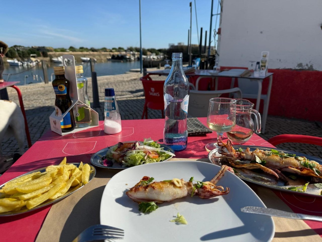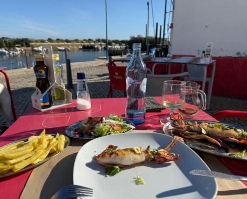 Einer der Handlungsorte ist das von Einheimischen wie von Touristen gern besuchte Restaurant Os Fialhos in Pinheiro (östlich von Fuseta), wo man direkt an den Dünen hervorragend Fisch & Co. Essen kann.